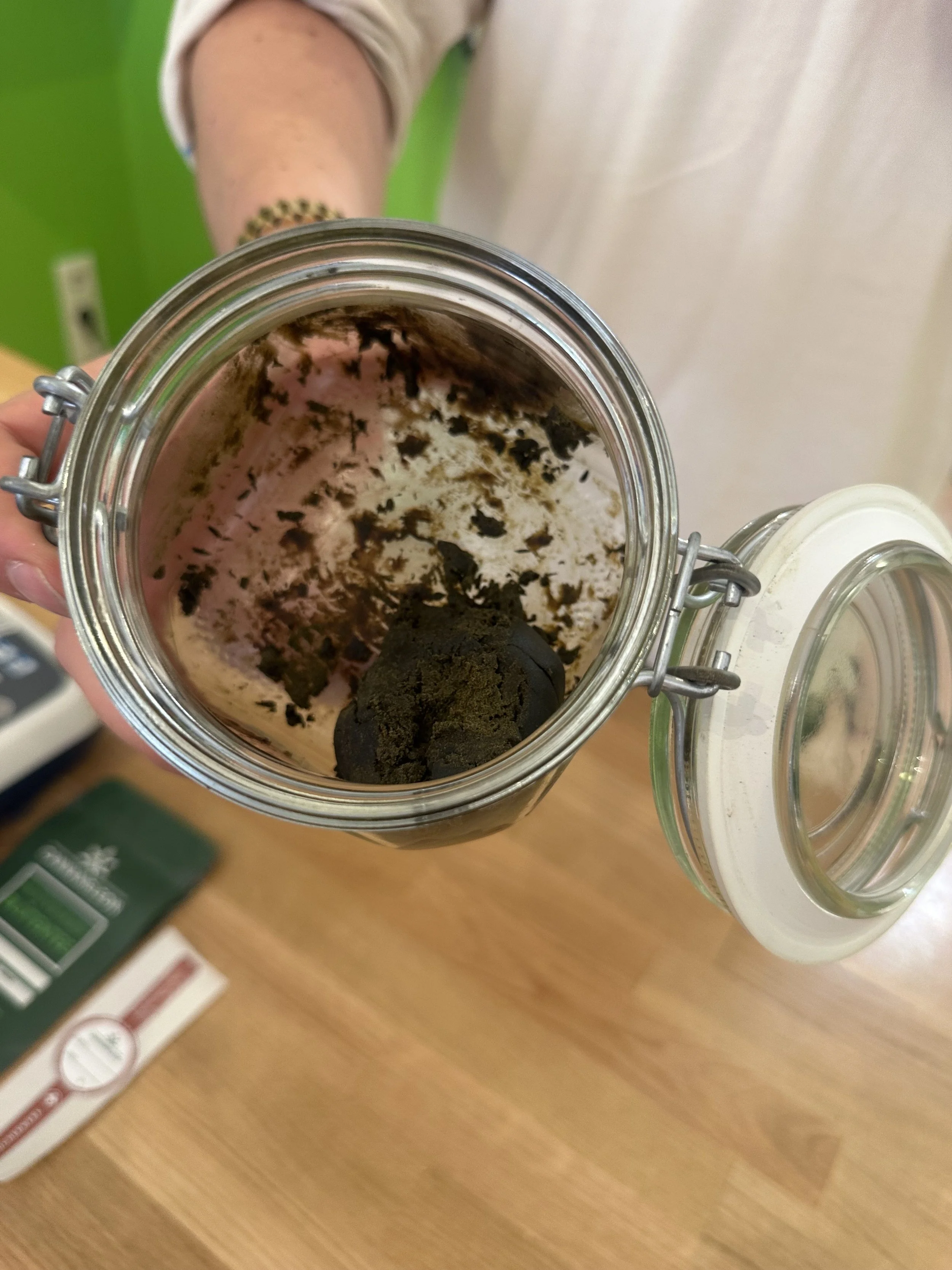 Walking into these CBD shops feels a lot like stepping into an American dispensary. Many have shelves lined with jars of flower, showcasing popular strain names familiar to U.S. consumers. Jay even managed to grab a couple grams of Ice Cream Cake, along with seeing classics like Gelato, Mimosa, and Haze on display.