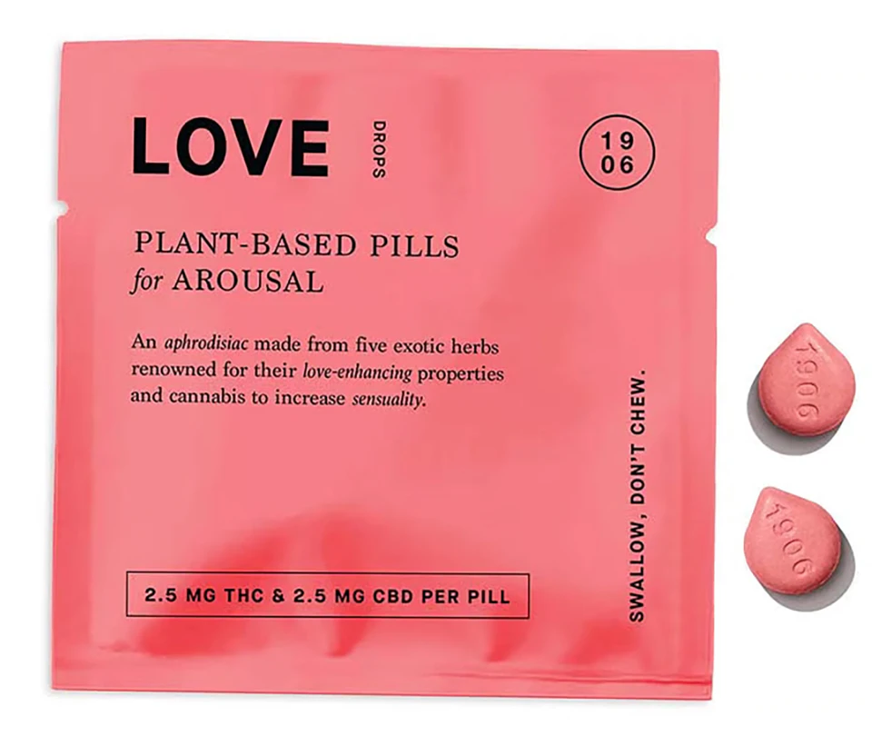 Love by 1906 is a fast-acting edible designed as an aphrodisiac. Each tablet contains 2.5mg of THC and 2.5mg of CBD, along with five plant-based aphrodisiacs, including Ashwagandha, Muira Puama, and Damiana. The formula increases blood flow, enhances arousal, and reduces inhibitions, making it ideal for enhancing intimacy.