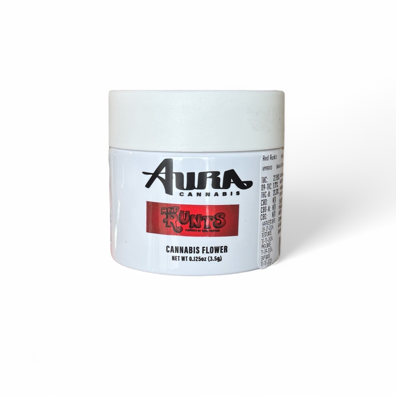 Red Runtz by Aura Cannabis is a 3.5g hybrid flower celebrated for its balanced effects and rich flavor profile. This strain offers a harmonious blend of uplifting and relaxing sensations, making it suitable for various occasions.