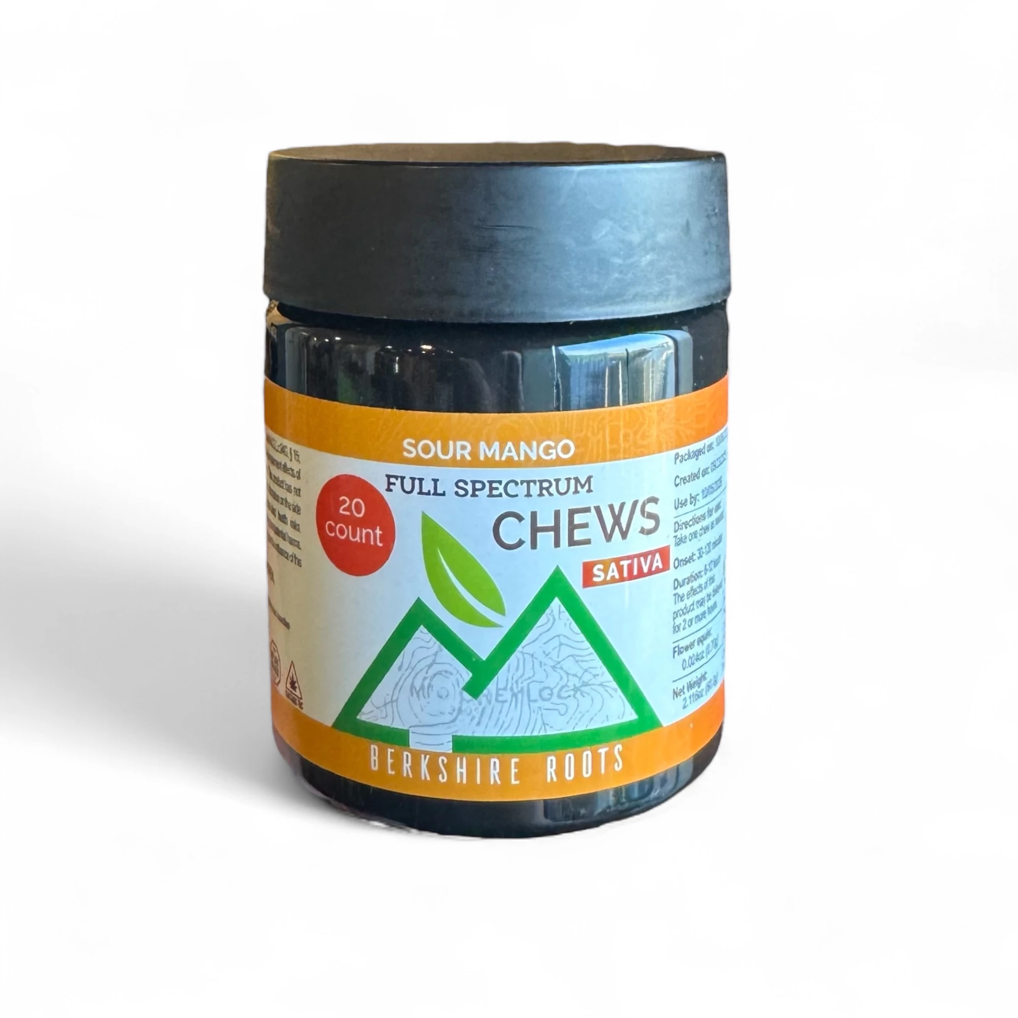 Sour Mango by Berkshire Roots is a full spectrum sativa chew with a total dose of 100mg. The product is crafted for those seeking a higher-dose edible with flavorful results and a dynamic effect profile.