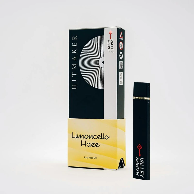 Limoncello Haze by Happy Valley is a sativa-dominant hybrid disposable vape, celebrated for its intensely citrus-forward flavor. This vape combines the zesty notes of lemon and tangerine with undertones of fresh pine and asiago cheese, creating a sharp and complex profile that's sweet on the finish, reminiscent of a digestif. It's a terpinolene dominant blend, ensuring a unique vaping experience.