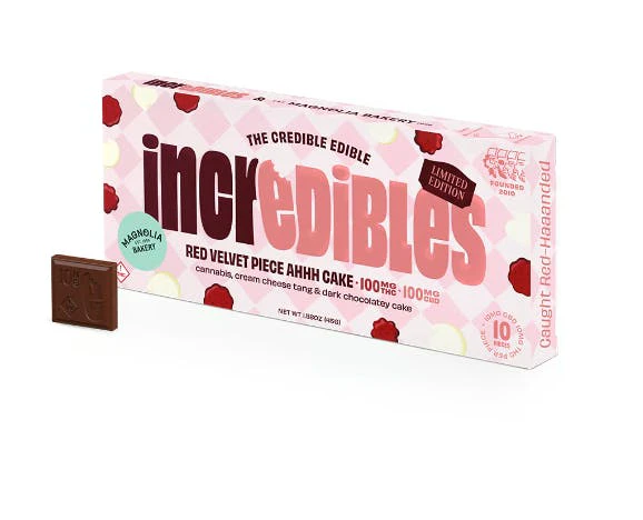 Red Velvet Cake 1 to 1 CBD THC Chocolate Bar by Incredibles is an exquisite edible that brings together the classic taste of moist crimson cake and cream cheese with the rich, satisfying flavor of dark chocolate. This chocolate bar is a result of a unique collaboration between Incredibles and the famed Magnolia Bakery.