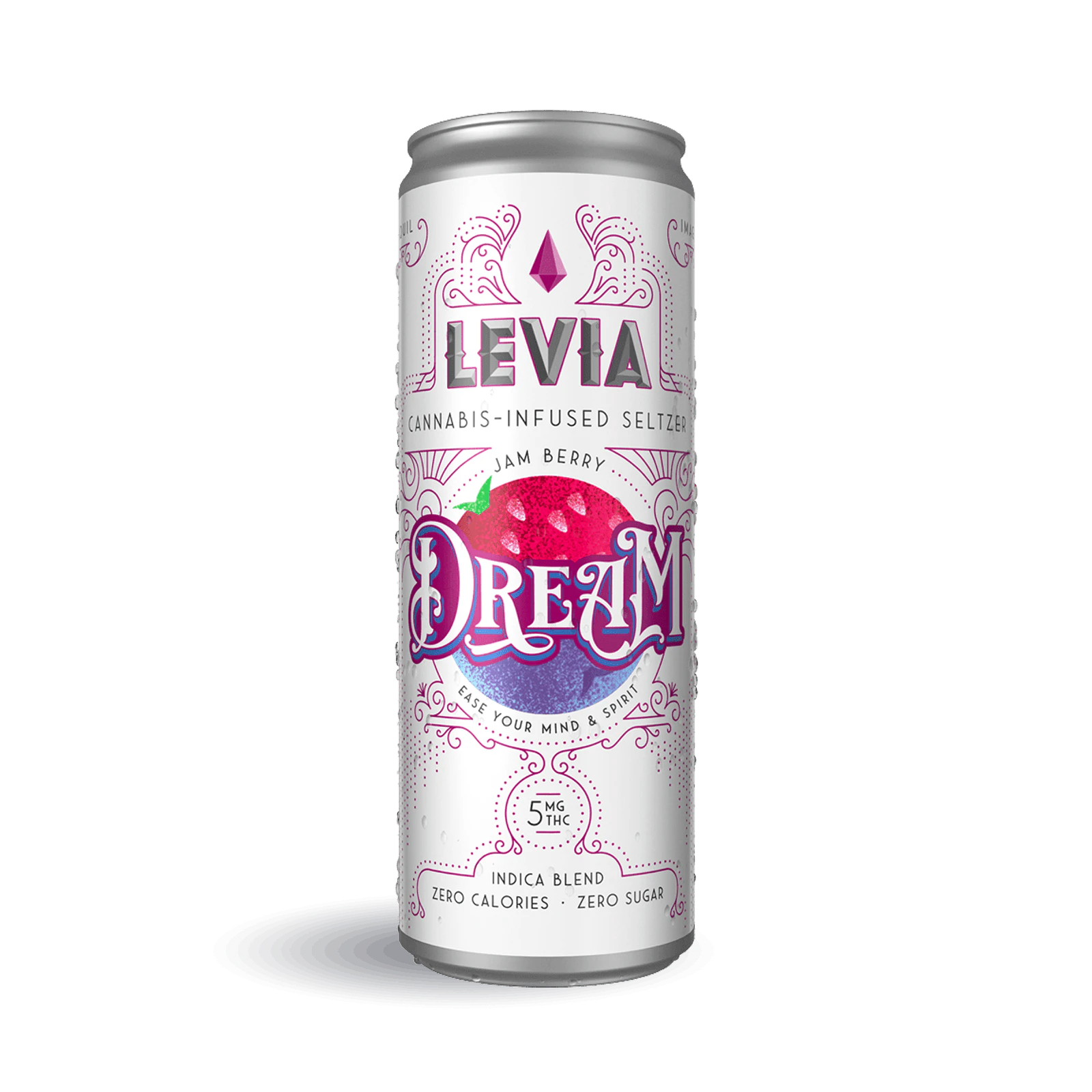 LEVIA Dream Seltzer is a cannabis-infused beverage crafted to promote relaxation and tranquility. This sparkling water combines natural jam berry flavors with an indica cannabis blend, offering a soothing option for those seeking a calming experience.