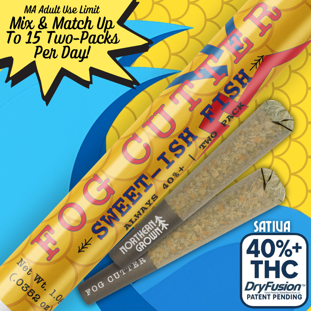 Sweet‑ish Fish by Fog Cutters is a sativa‑hybrid infused preroll (2‑pack) known for its bold berry sweetness and elevated effects.