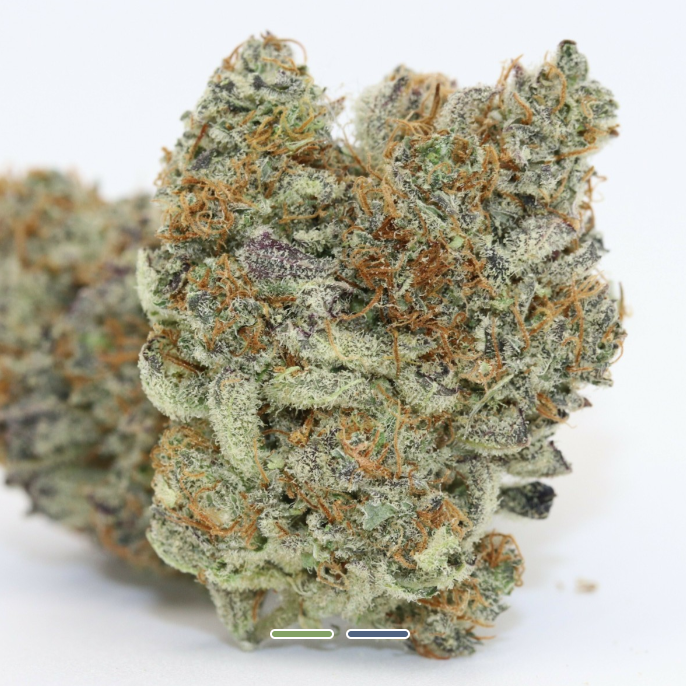 This indica strain is known for its dense, vibrant buds covered in red pistils and a frosty layer of trichomes, making it both visually appealing and potent