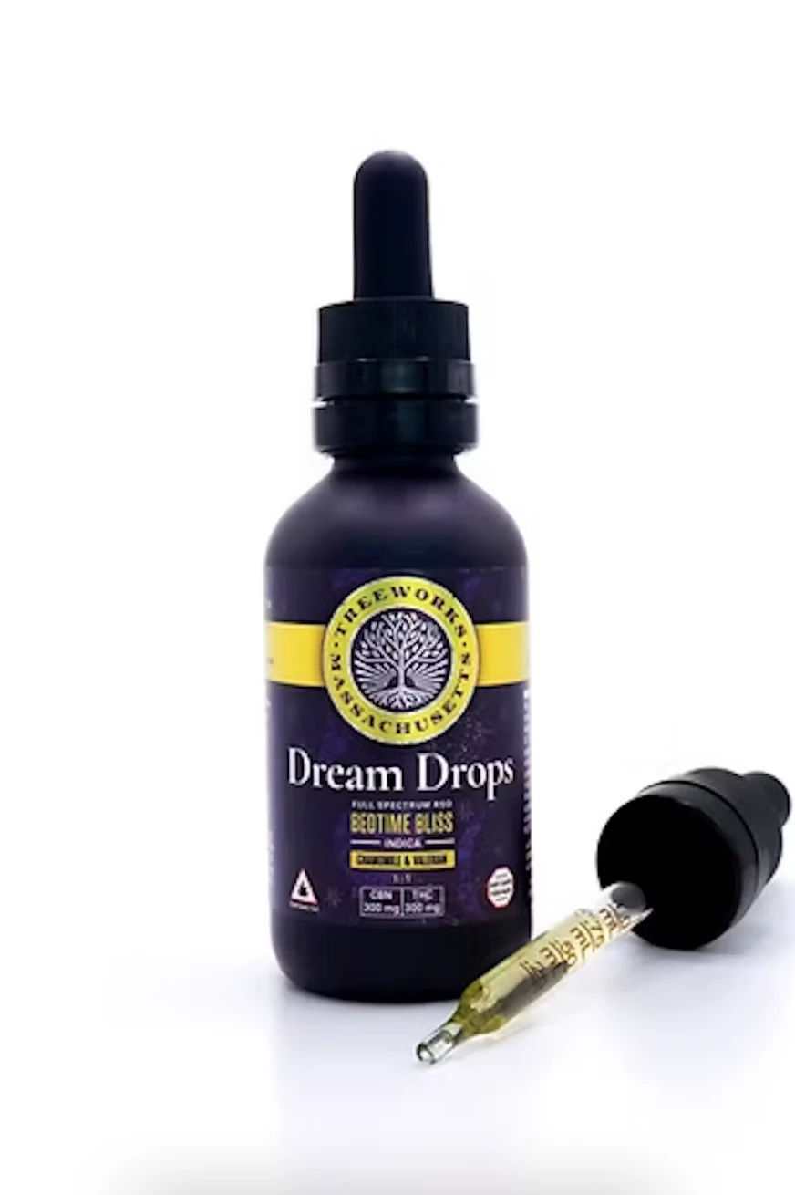Dream Drops by Treeworks is a top-selling tincture designed to aid relaxation and sleep. Infused with natural ingredients like Valerian Root, Chamomile, and CBN (Cannabinol), this tincture is formulated to help you drift into a restful sleep. The Dream Drops tincture's balanced blend of cannabinoids contributes to its effectiveness.