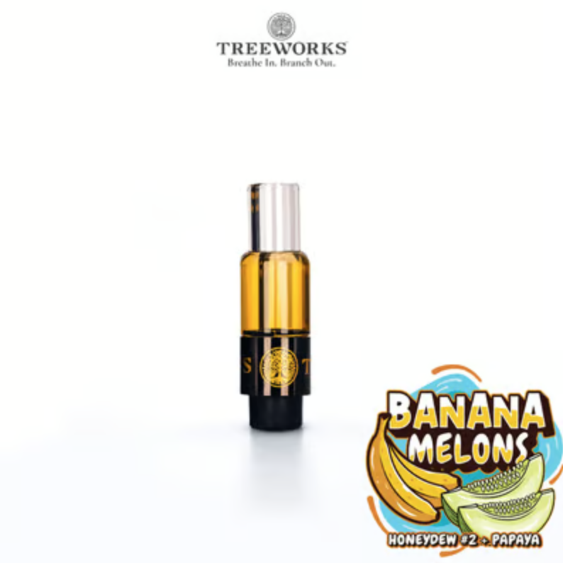 Treeworks’ Banana Melons Live Rosin Cartridge is a premium 0.5g vape cart known for its solventless extraction process, providing a clean and potent cannabis experience. With full-spectrum cannabinoids and terpenes, this live rosin offers a smooth, flavorful hit with every pull, housed in an all-glass cartridge to maintain purity.