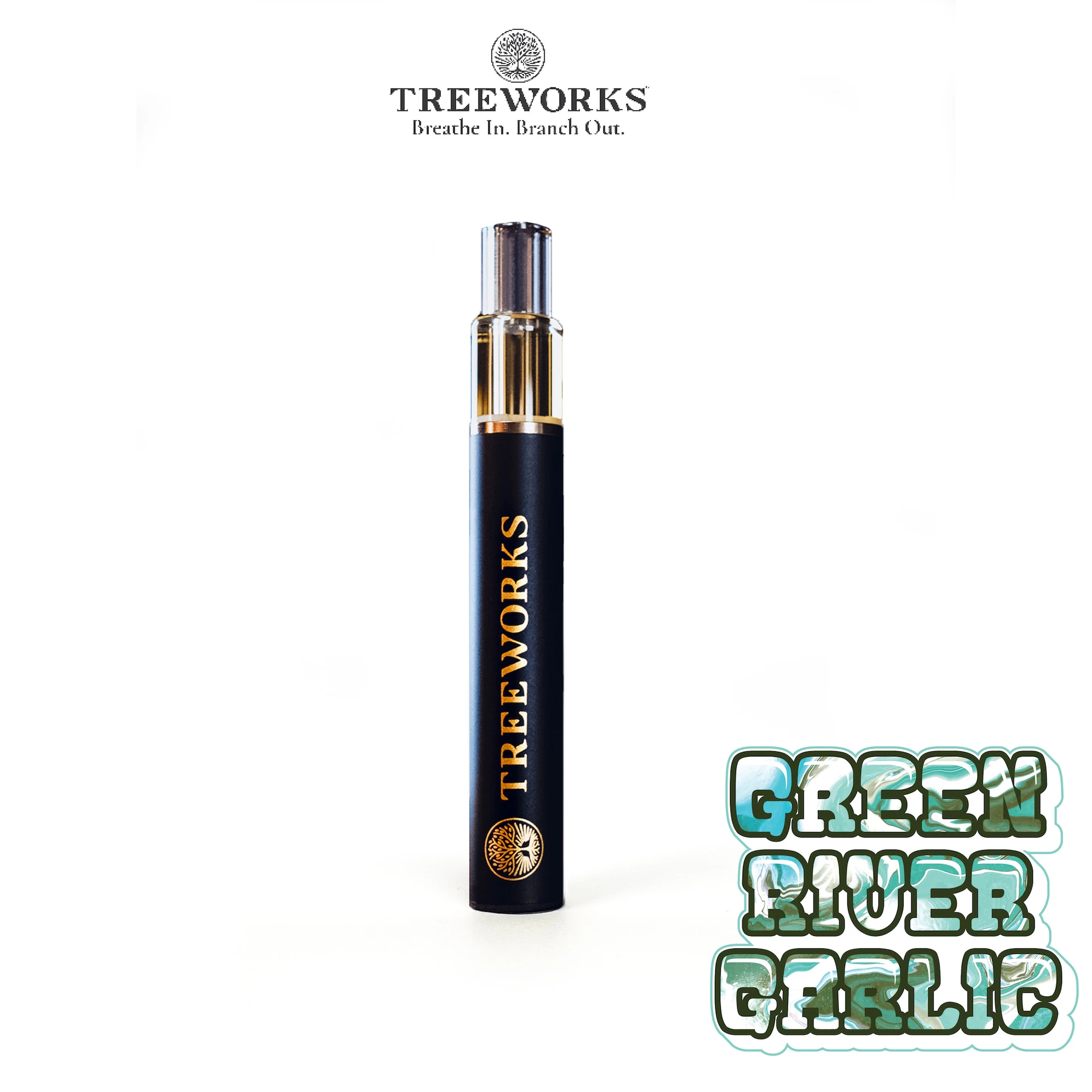 Green River Garlic by Treeworks comes as a 0.5 g live rosin disposable vape—often referred to as a Rosin Wand or cartridge—designed with premium, solventless extraction and sleek, user-friendly hardware. It features a clean, water-and-heat-based process, an all-glass reservoir, a rechargeable low-voltage battery, and a removable cap to keep the product fresh.